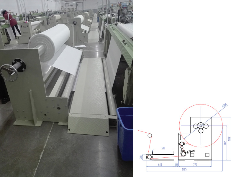 卷布速度與織布機(jī)的速度同步自動(dòng)控制,操作簡單,減少工序流程及降低成本,并能獲得高質(zhì)量的卷取效果。